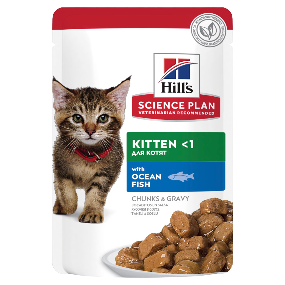 Pisoiul tău va aprecia gustul hranei HILL'S SCIENCE PLAN Kitten cu bucăţi de pește oceanic în sos. Are un echilibru perfect de gust şi nutriţie pentru pisoiul tău.